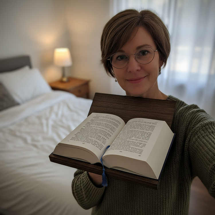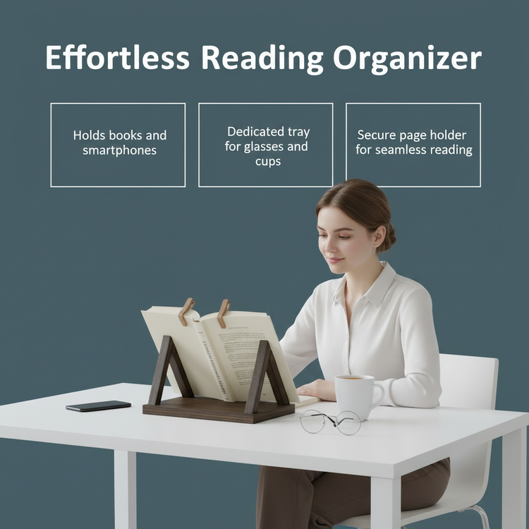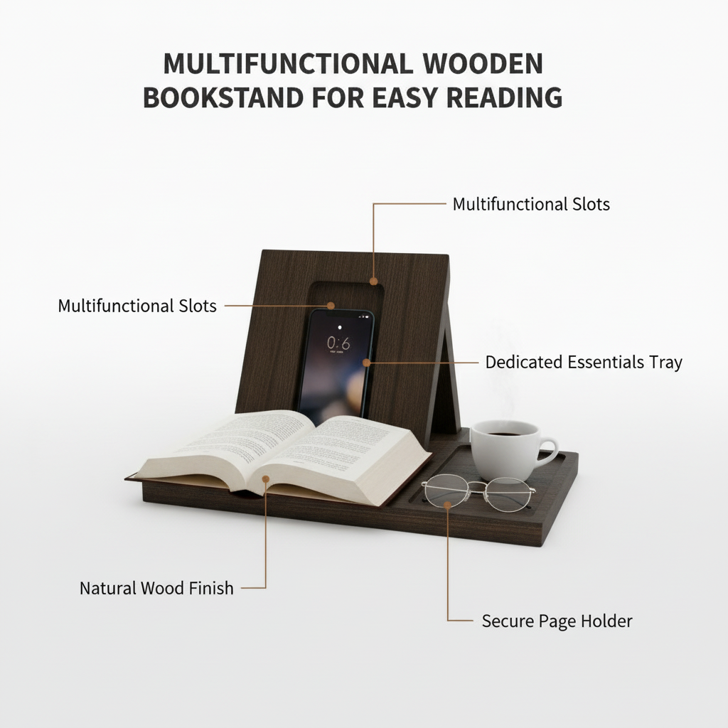 β’ Holds books and smartphones β’ Dedicated tray for glasses and cups β’ Secure page holder for seamless reading